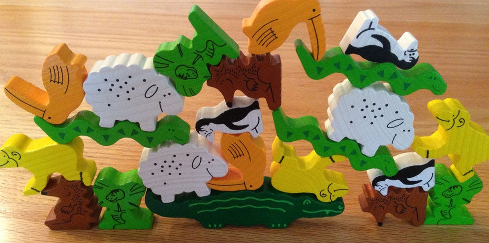Jenga occupies a similar gamespace as Animal Upon Animal and is a good “mainstream” pickup for a family game that will get used for years and years.