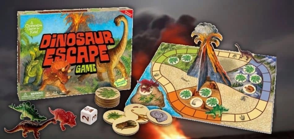 Dinosaur Escape is a great game to consider for the very young, as early as age 2-3. It’s a good candidate for being a child’s very first board game, but they’ll likely outgrow it earlier, too. Roll dice, flip over ferns to rescue three dinosaurs before the volcano erupts. We like to house rule this one to make it easier (ferns stay flipped up) or harder (you can only flip over a fern if your dino is next to it). It being fully cooperative is a huge plus!