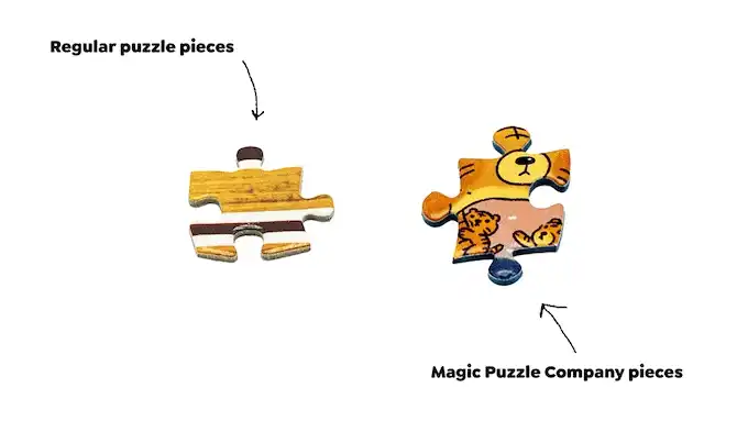 “Normally, jigsaw puzzles don’t have an exciting ending. You put in the last piece, and you’re done. We’ve designed these so that when you put in that last piece, it triggers a magic trick, which reveals the special ending to the story of the puzzle.”