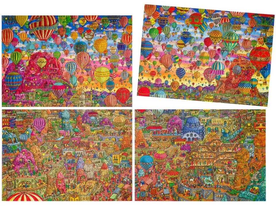 Almost each *individual piece* in these puzzles seems thoughtfully composed and cut. With 1000 pieces in each puzzle they don’t all have a funny face or detail. But there genuinely does seem to be a large amount of care and attention put into ensuring no piece is ever a generic smudge. They’re also cut into more interesting shapes