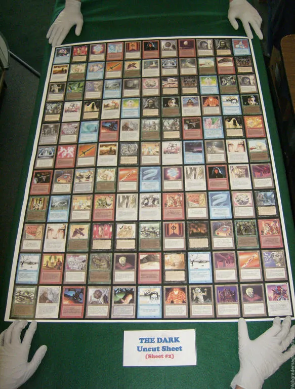 Example – some “Uncommon’ cards were printed 4x on each Uncommon sheet, like Oasis. The math works out to 41,300 Oasis cards printed in total. But some “Common” cards were only printed once on the Common sheets, like the odd Mountain mentioned earlier. And there are actually fewer of these “C1” commons (cards printed once per common sheet) than there are “U4” Uncommons (cards printed 4x per Uncommon sheet). The math works out to around 41,300 total uncommon copies of Oasis printed in total, and 31,000 total common copies of the Arabian Nights Mountain printed in total, making the “common” Mountain a little more rare overall. Weird, right?